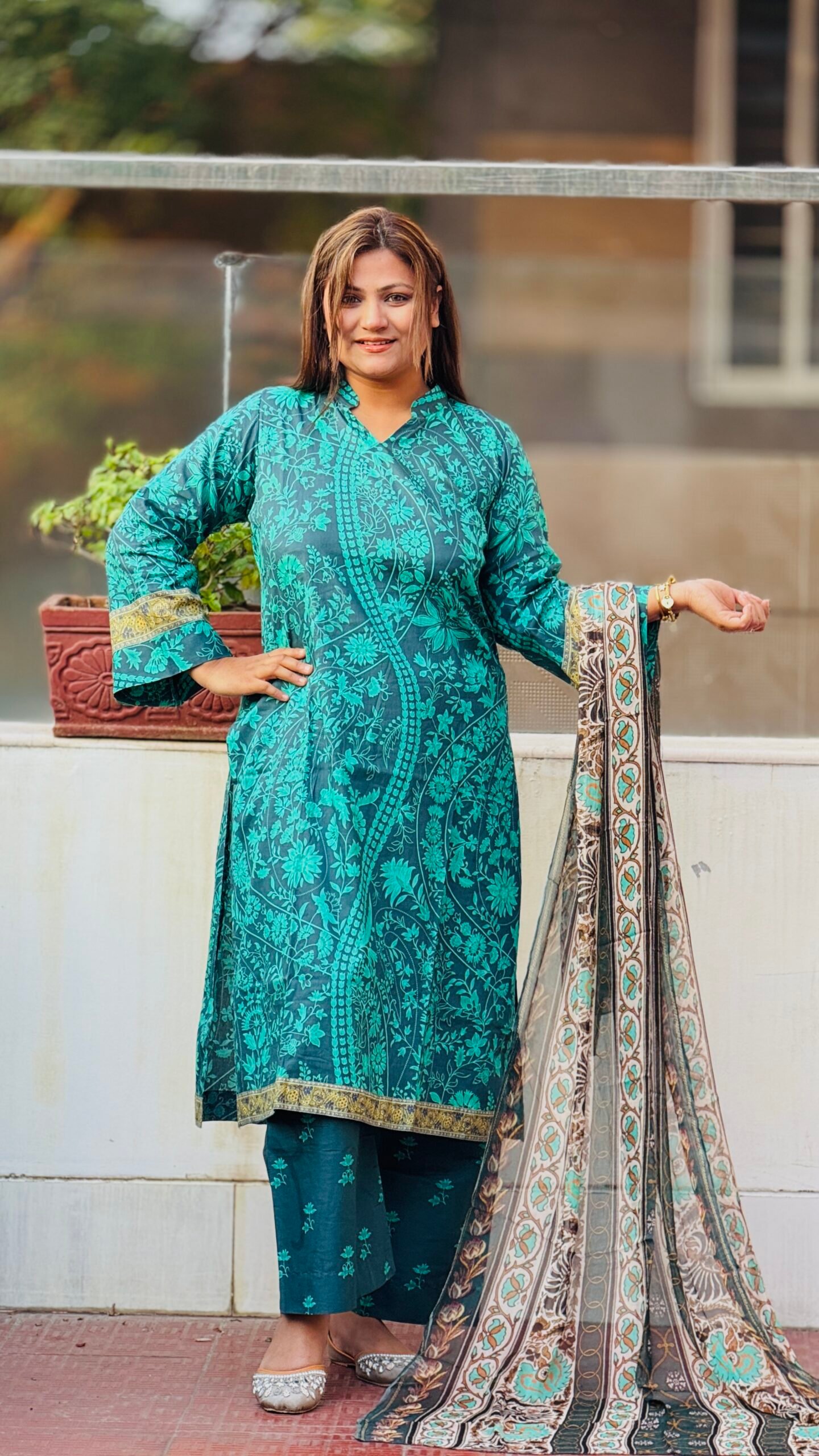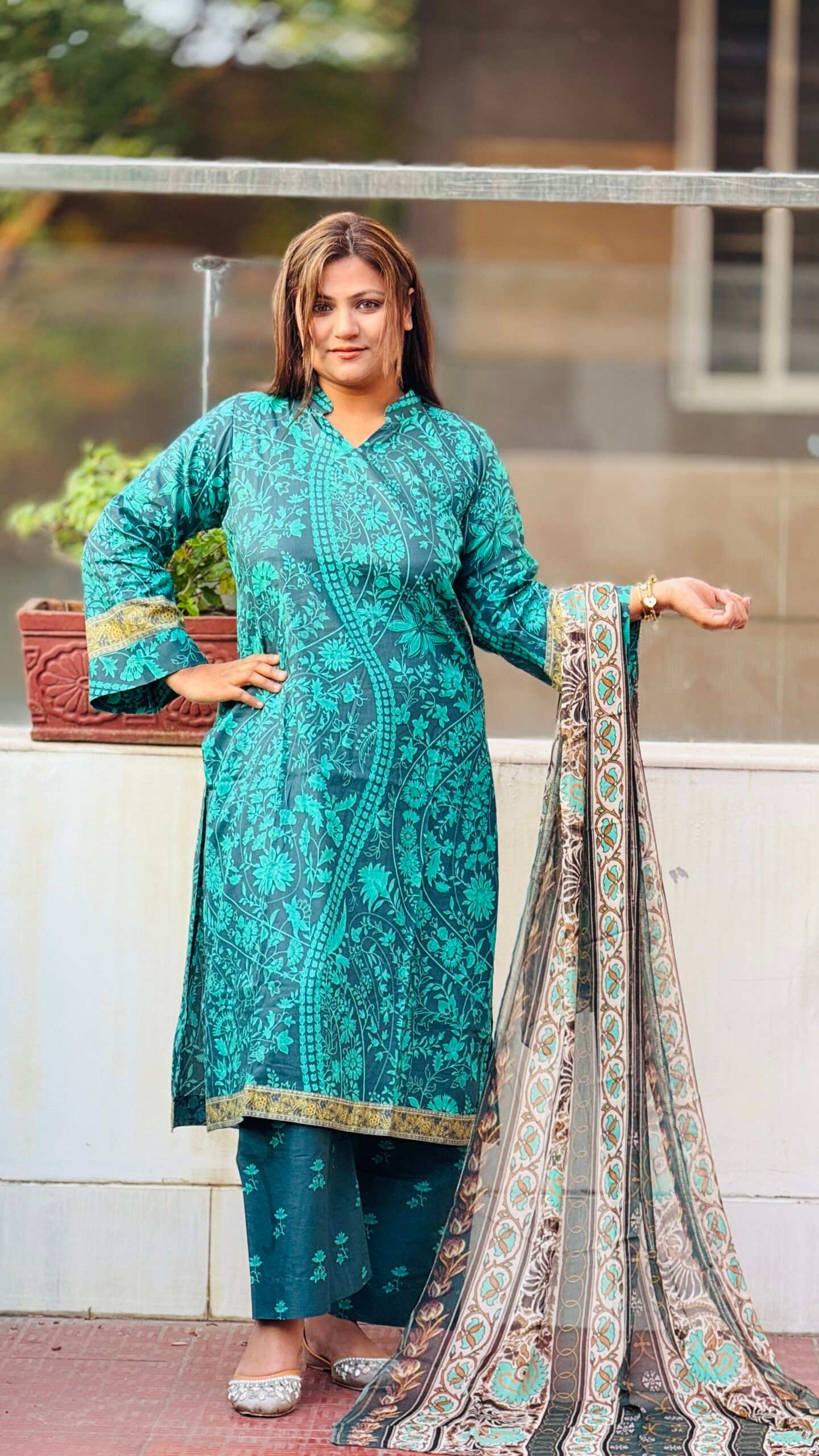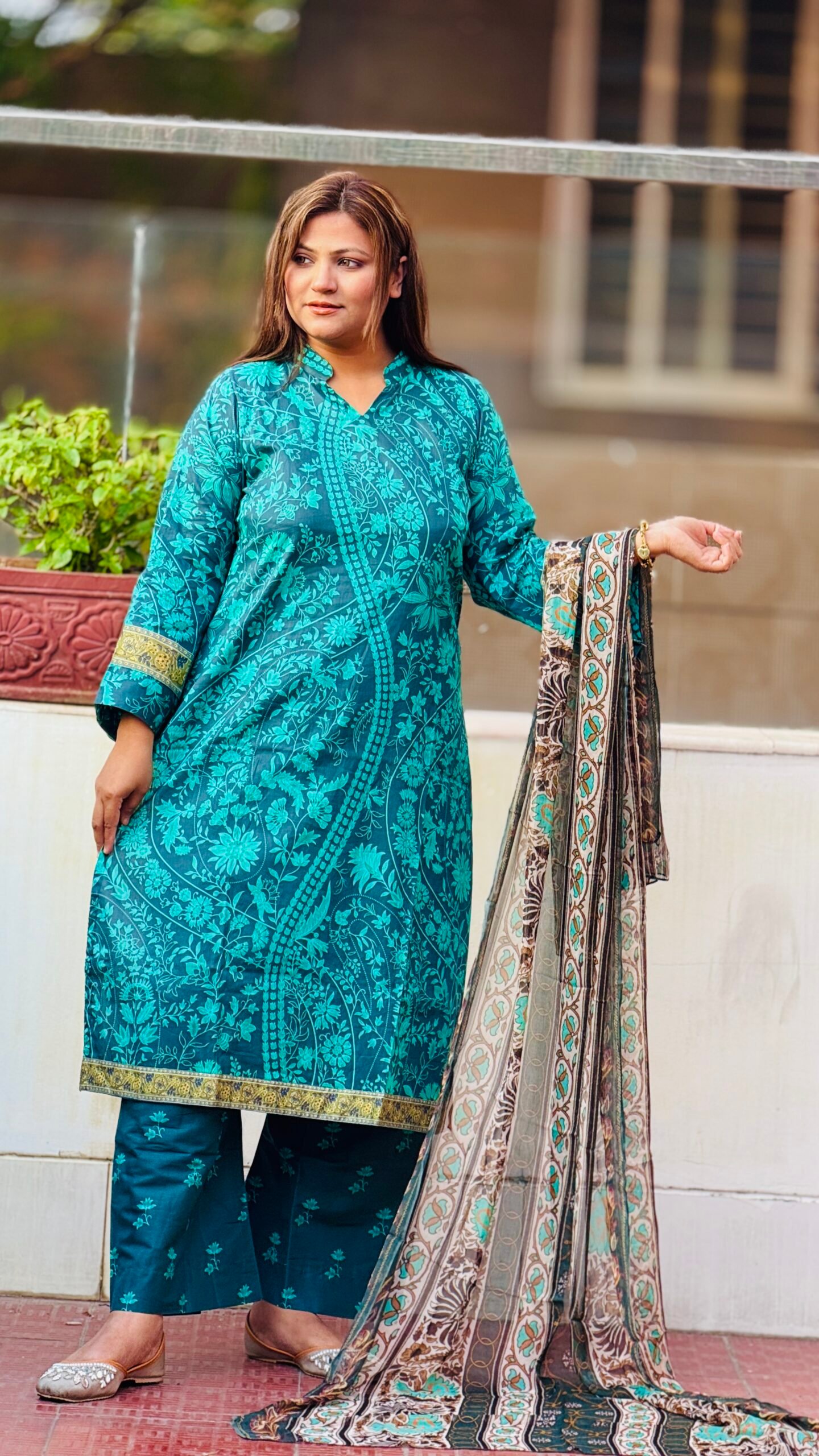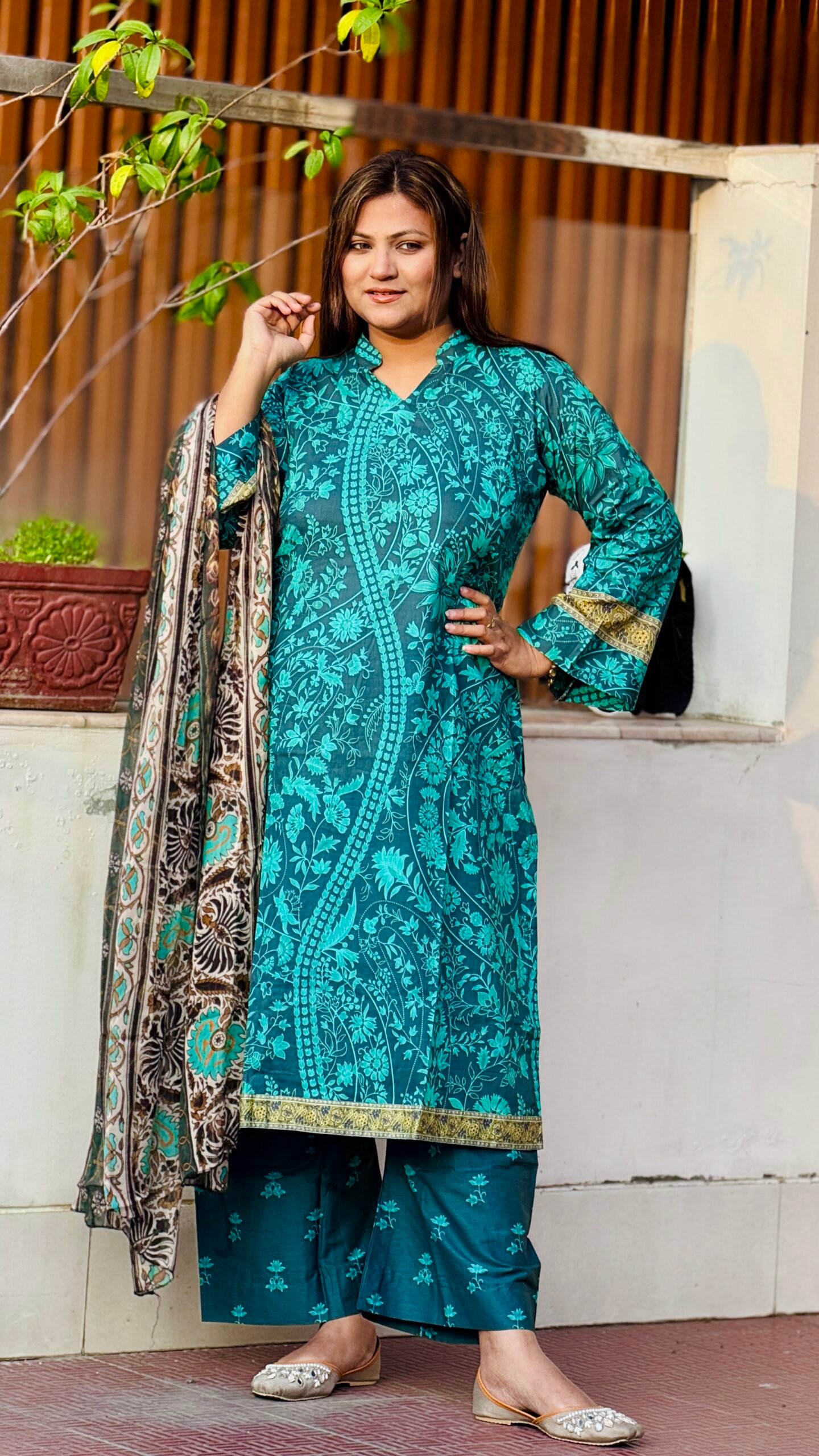 • সেট: প্রিমিয়াম কামিজ, ম্যাচিং সালোয়ার এবং আকর্ষণীয় ডিজিটাল প্রিন্টেড ওড়না।