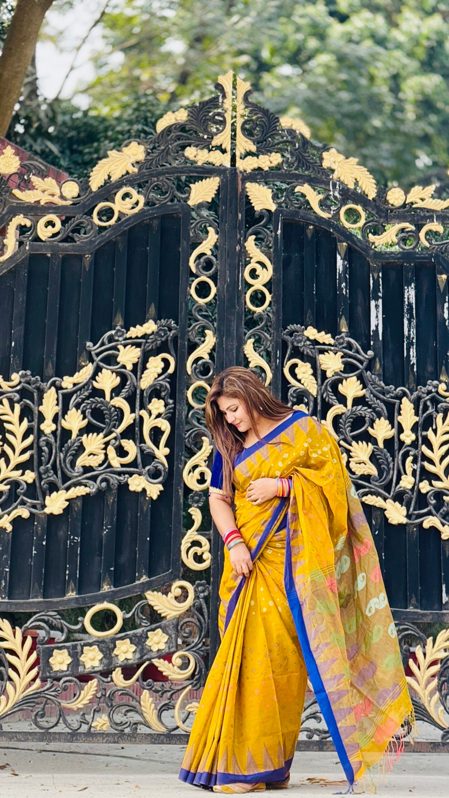 ডিজাইন ও কাজ: শাড়ির জমিন জুড়ে রয়েছে সূক্ষ্ম ও নিখুঁত মোটিফের কাজ এবং পাড়ের ফিনিশিং অত্যন্ত প্রফেশনাল।